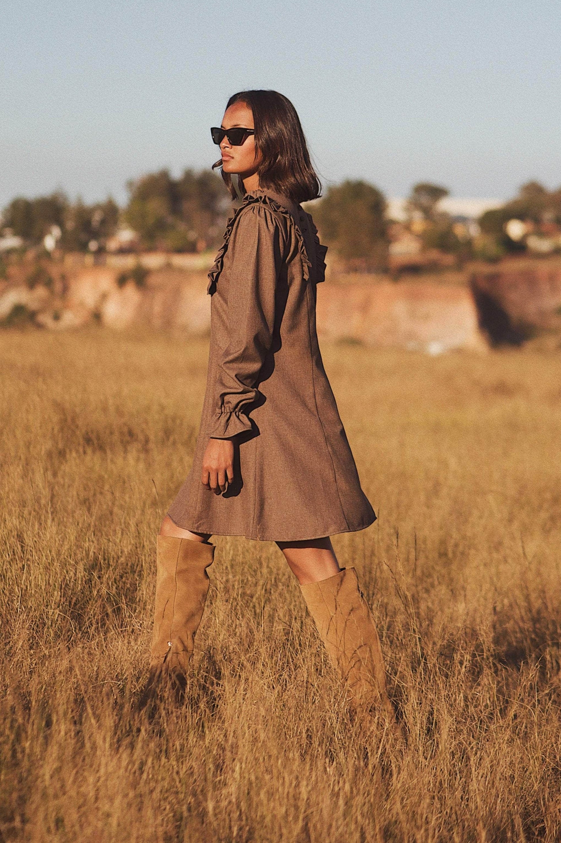 VESTIDO CORTO MARRÓN — LIGEREZA Y...